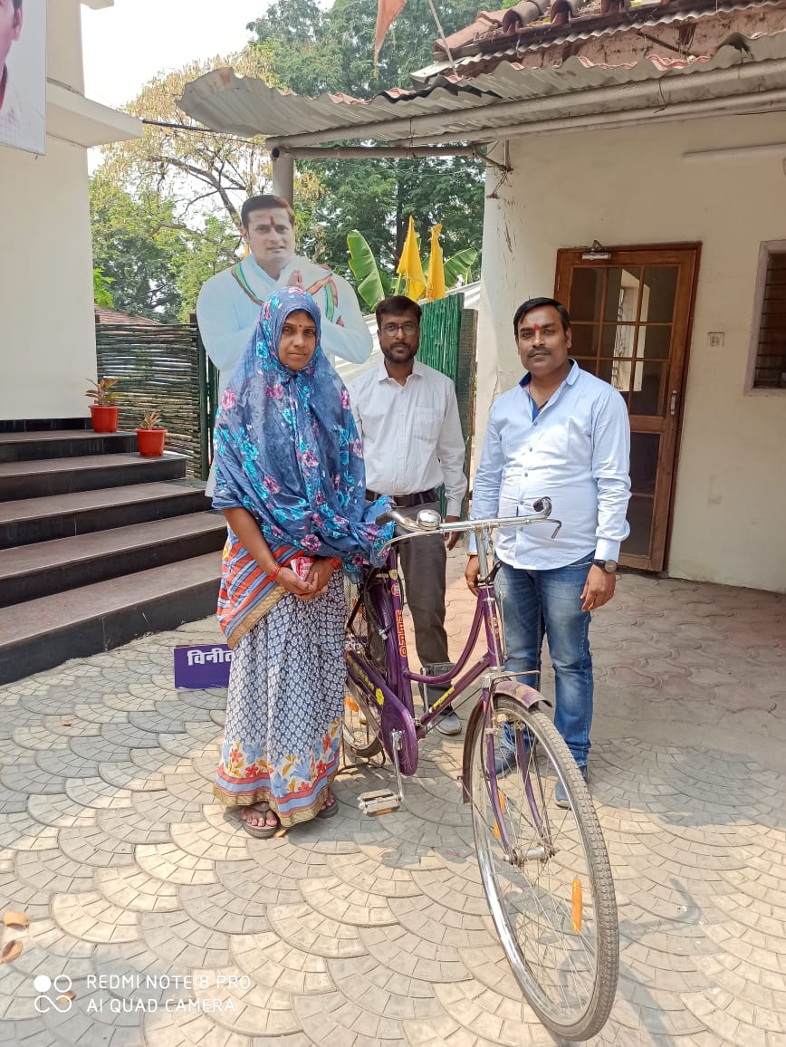 राजधानी रायपुर के अपने वार्ड के तिलक नगर में रहने वाली सुधा सिन्हा के आवेदन पर क्षेत्रीय विधायक विकास उपाध्याय से महिला के लिए सायकिल उपलब्ध कराने अनुरोध किया था। श्री उपाध्याय ने तत्काल महिला की मदद करते हुए आज उन्हें सायकिल उपलब्ध कराया।