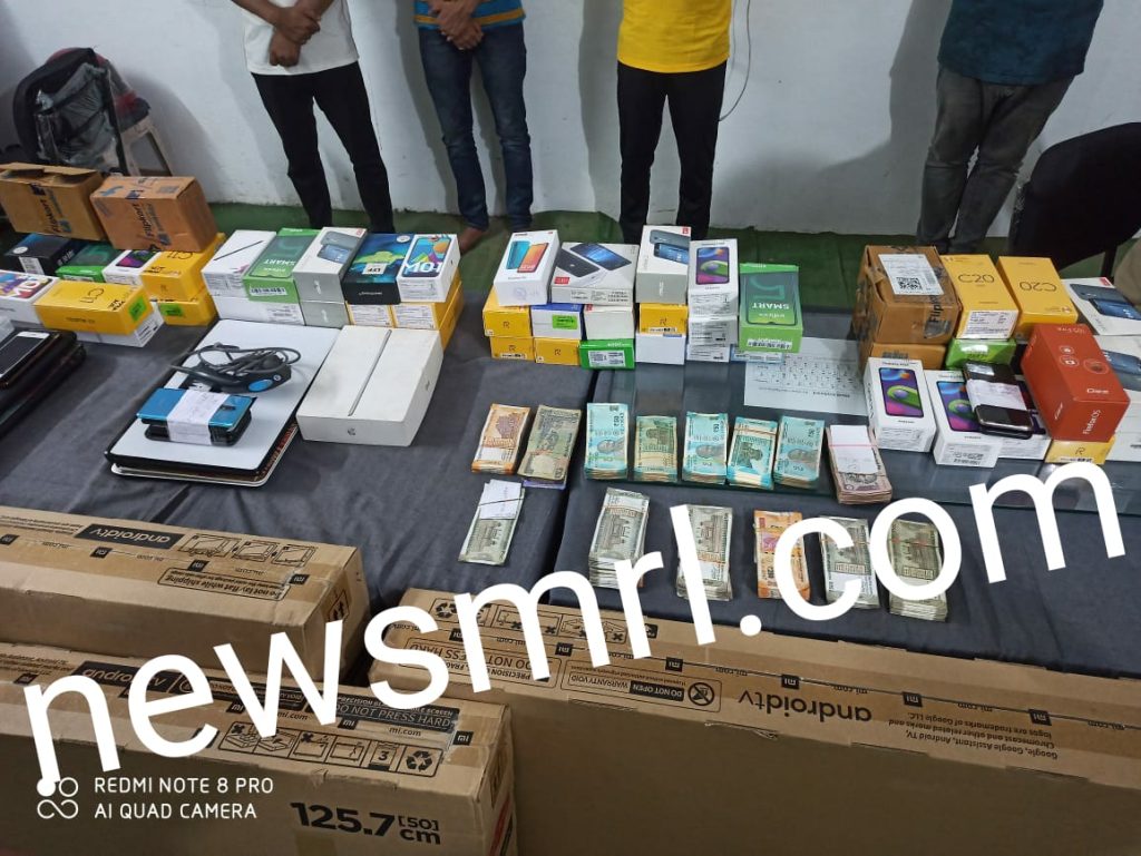 - 03 नग 50 इंच एम 0 आई 0 का स्मार्ट टीव्ही 0 , 02 नग लेपटाप , एवं 120000 / रु नगदी बरामद हुआ ।