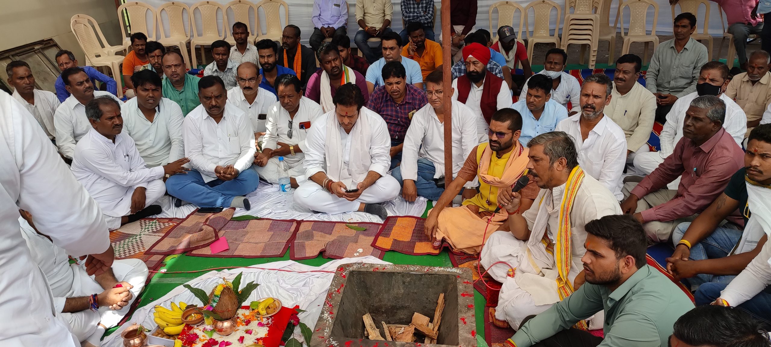 जीई रोड हनुमान मंदिर में 21 पंडितों द्वारा यज्ञ कर हवन् साथ जन जागरण पदयात्रा आरम्भ हुआ